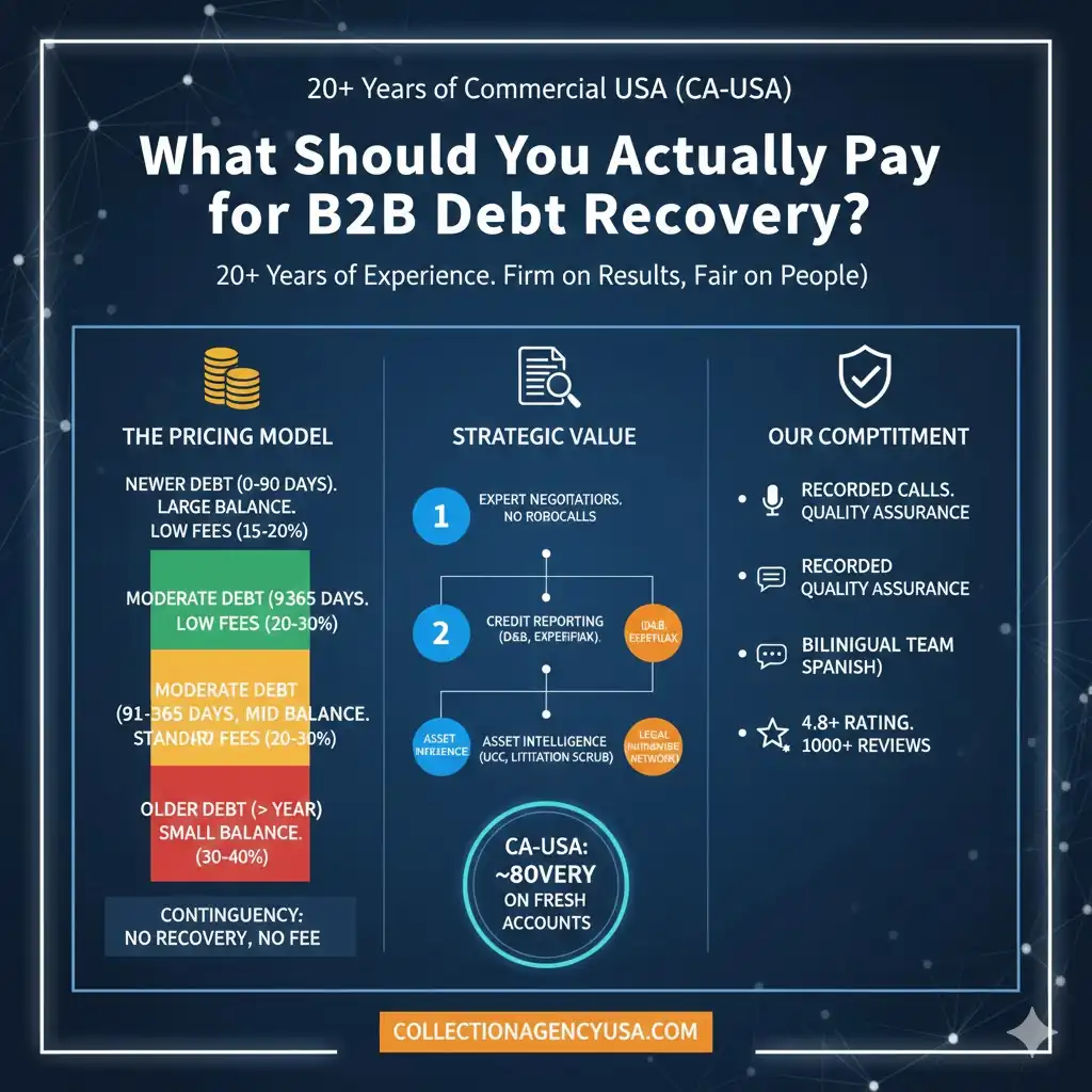 In the world of B2B commerce, an unpaid invoice is more than a line item; it is a breach of trust and a drain on your working capital. When searching for a collection partner, many business owners make the mistake of looking at the lowest percentage first. However, in commercial recovery, cost is not the same as value. If you hire a “budget” agency that recovers 20% of your debt at a 10% fee, you’ve lost far more than if you hired a premium firm that recovers 80% at a 25% fee. Here is the definitive guide on how to evaluate a recovery partner and why the Collection Agency USA (CA-USA) model is the industry benchmark.
